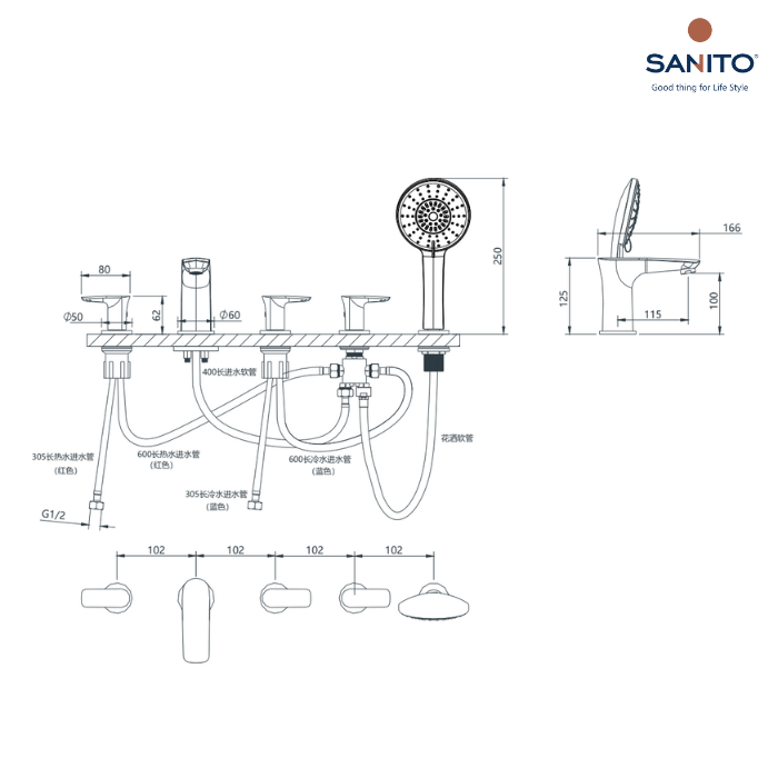 ก๊อกผสมติดอ่างอาบน้ํา Series MIIX - SANITO