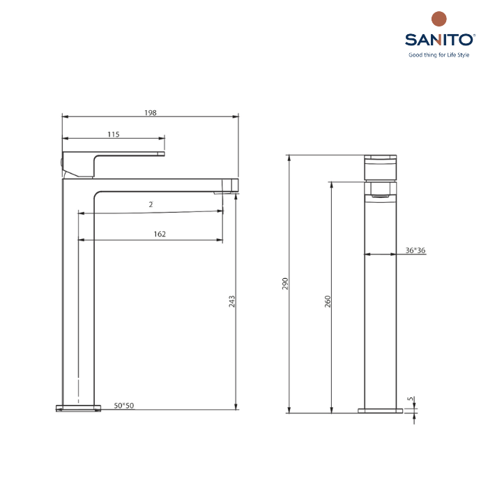 ก๊อกผสมอ่างล้างหน้า ทรงสูง แบบก้านโยก Series IRIS - SANITO
