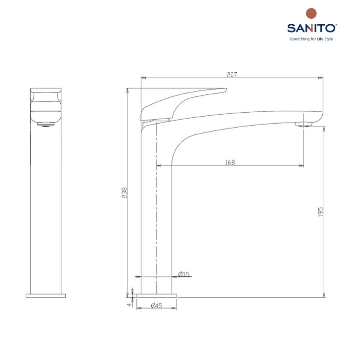 ก๊อกผสมอ่างล้างหน้า ทรงสูง แบบก้านโยก Series PEARL - SANITO