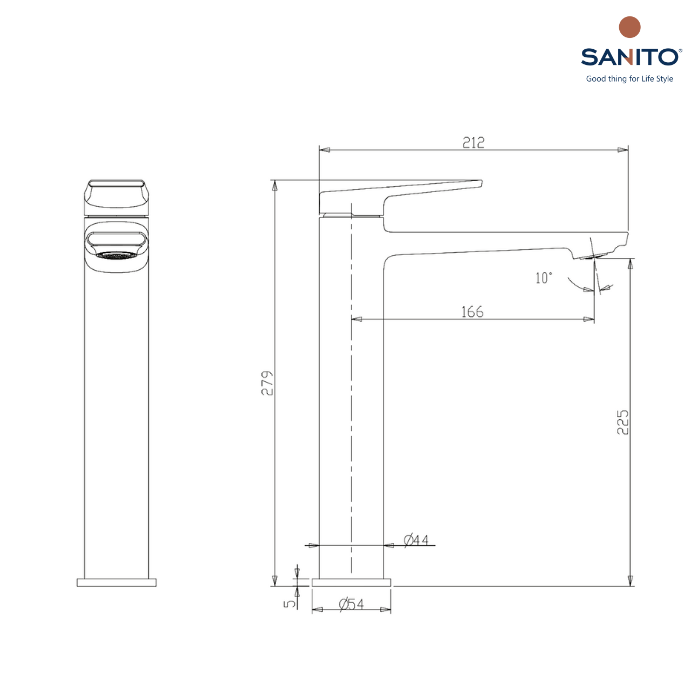 ก๊อกผสมอ่างล้างหน้า ทรงสูง แบบก้านโยก Series PEARL - SANITO