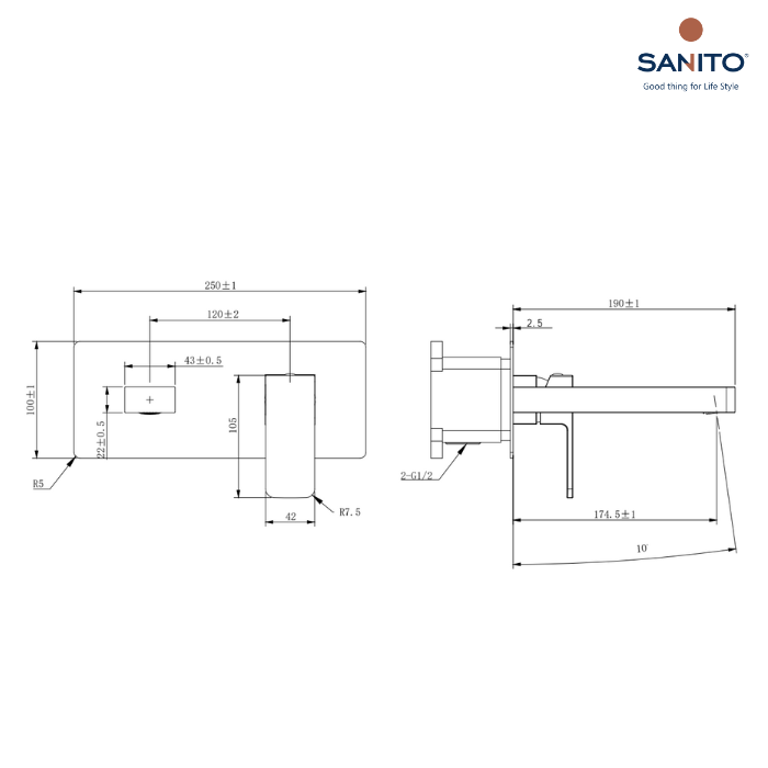 ก๊อกผสมอ่างล้างหน้า แบบฝังผนัง Series COZY - SANITO