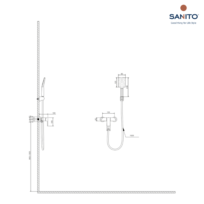 ชุดฝักบัวสายอ่อน พร้อมก๊อกผสมยืนอาบ Series LIVA - SANITO