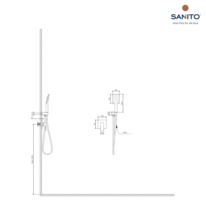 ชุดฝักบัวก้านเเข็งพร้อมฝักบัวสายอ่อน 3 ฟังก์ชัน Series SERINA - SANITO