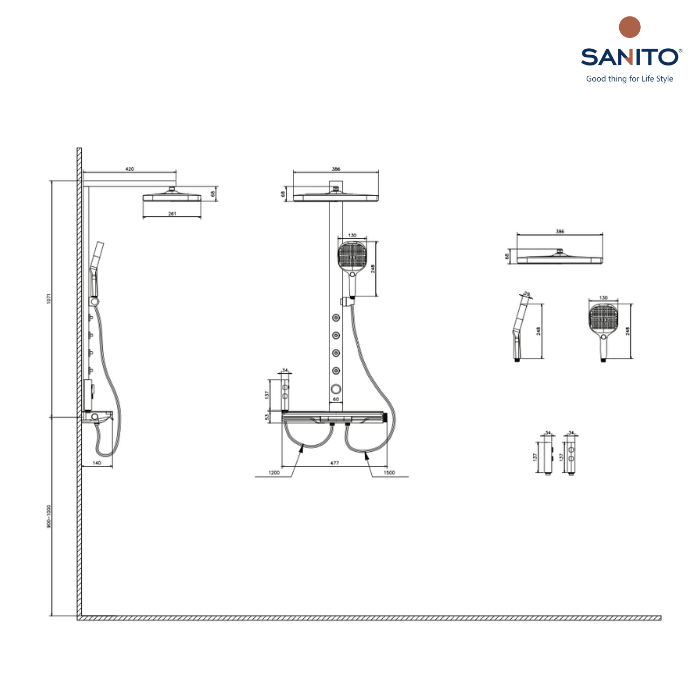 ชุดท่อฝักบัว (Shower Tube): ท่อแนวตั้งผลิตจาก สเตนเลสสตีล ทนทานต่อการกัดกร่อน