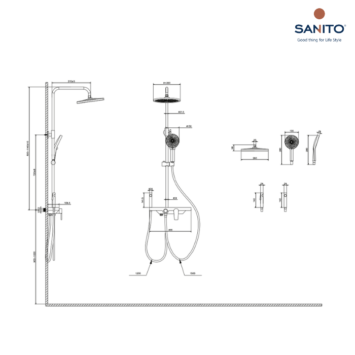 ก้านเหลี่ยมสําหรับฝักบัวก้านเเข็งออกผนัง SANITO