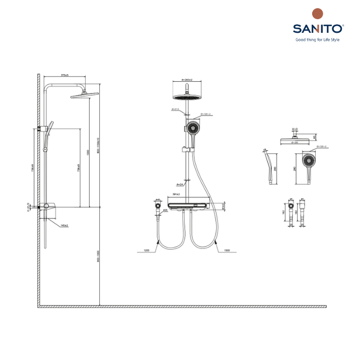 ฝักบัวสายอ่อน แบบผสม พร้อมวาล์วฝังผนัง Series MIST - SANITO