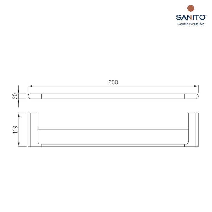ราวแขวนผ้า แบบราวคู่ 600 มม SANITO